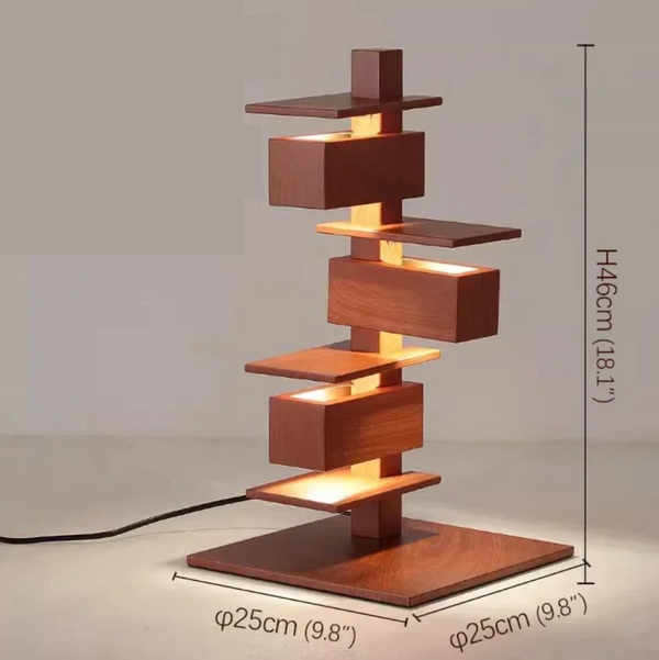 Turn your interior into an art gallery with this sculptural wooden floor lamp featuring an exceptional architectural design. Composed of asymmetrically stacked wooden blocks, this luminaire emits a warm, soft glow through its openings, creating a spectacular interplay of light and shadow. Perfect for a living room, gallery, or contemporary workspace.